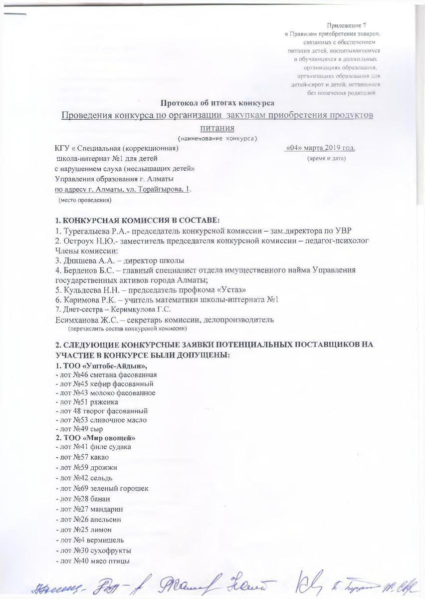 Протокол об итогах конкурса » № 1 арнайы мектеп-интернаты